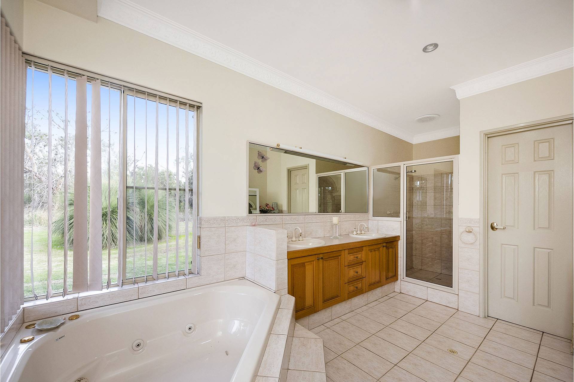 This fabulous home has an abundance of features and welcomes you through the gated entrance, up the meandering circular driveway to uncover something quite special. This homestead is an exceptional lifestyle proposition that ultimately creates a substantial family estate. Collectively the home offers 5 generous sized bedrooms, the 5th bedroom is currently being used as a home office, the activity room currently being used as a theatre room for family movies nights, 2 bathrooms, the spacious master suite comprises of a huge walk-in robe, an impressive en-suite with spa bath, shower, double vanities, and separate toilet.