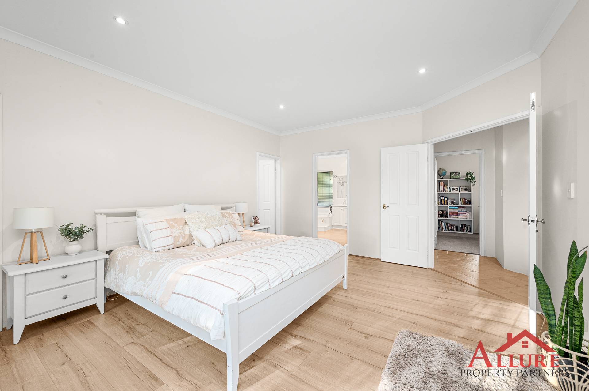 The king size master suite with huge walk-through robe and en-suite bathroom is complete with, spa bath, shower, double vanity, and separate powder room toilet.