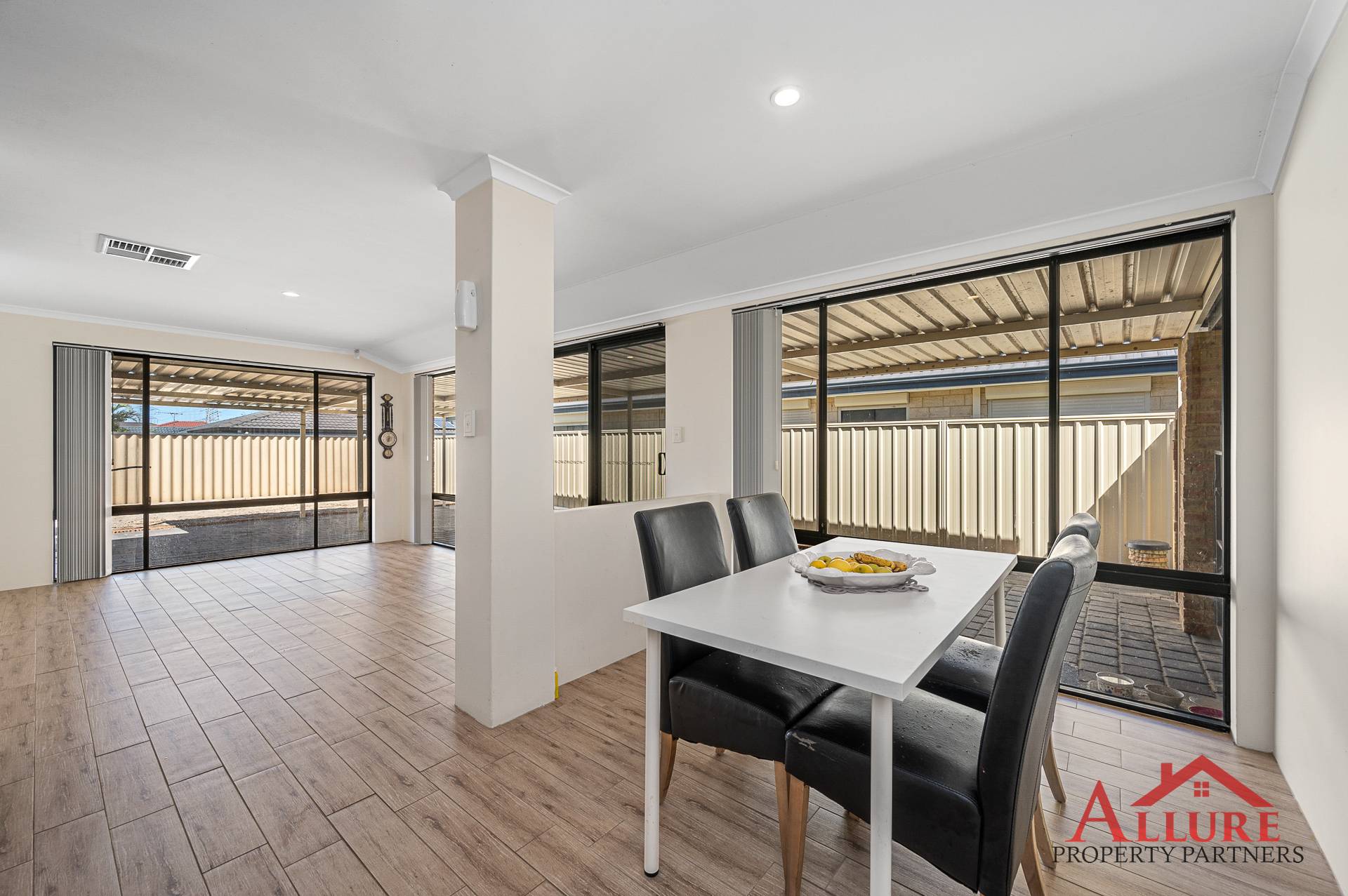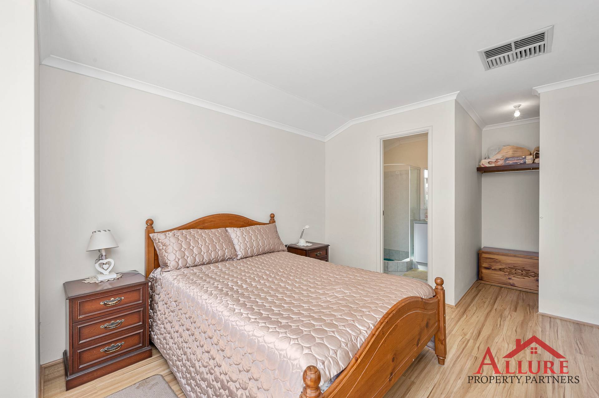 The front of the property is fully fenced with a gated entry, on entry to the home is a formal style lounge room, with the master bedroom also located at the front entry. The master suite has an en-suite bathroom which includes shower, vanity, and toilet.