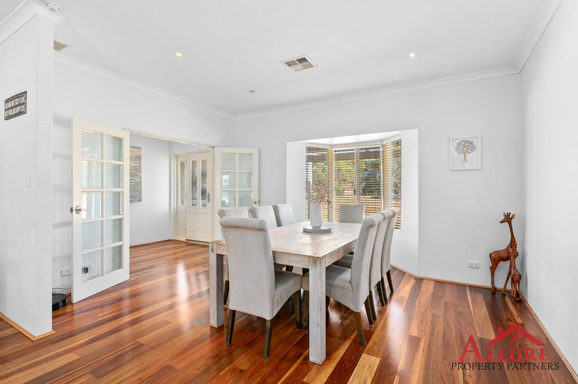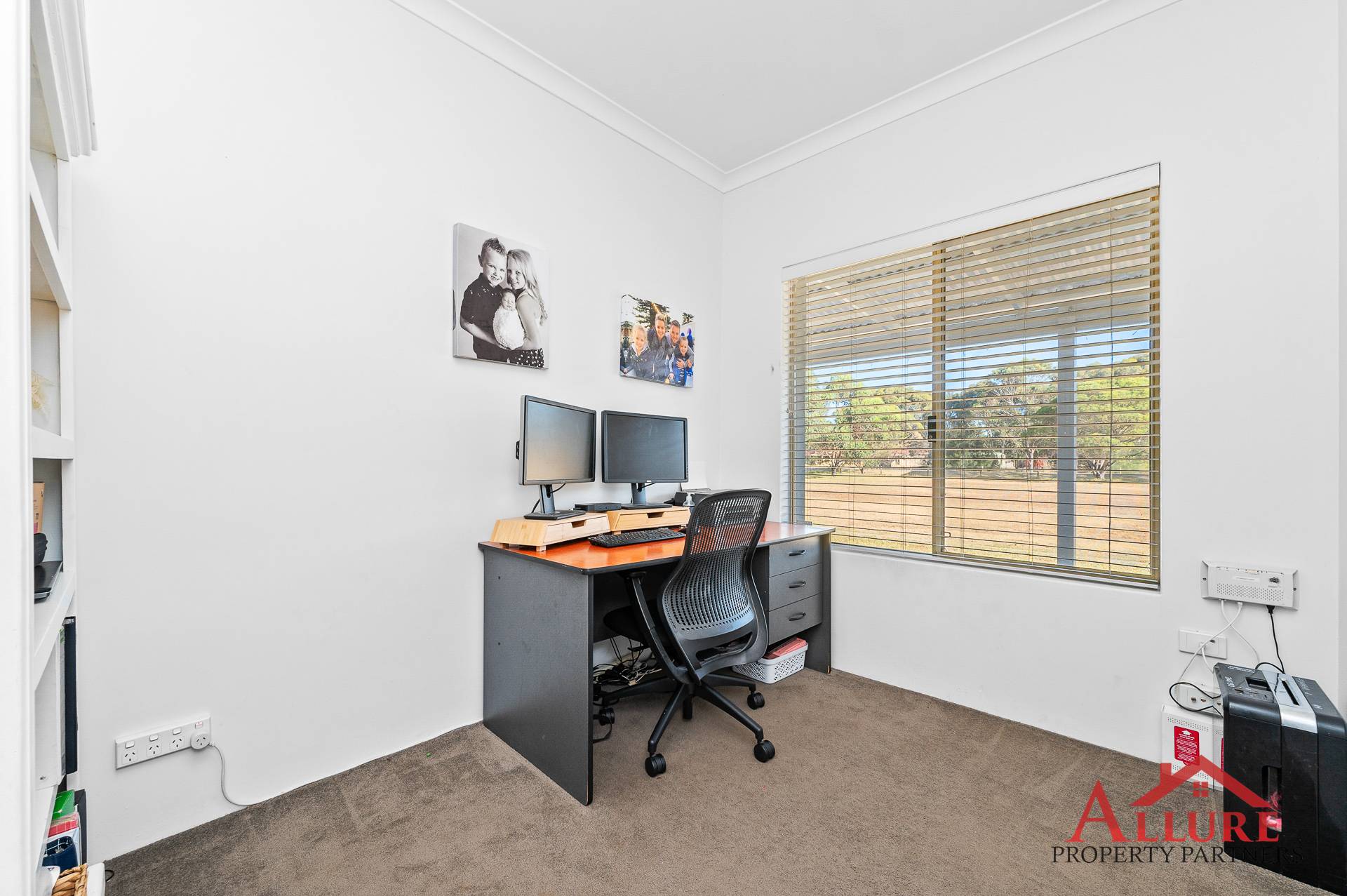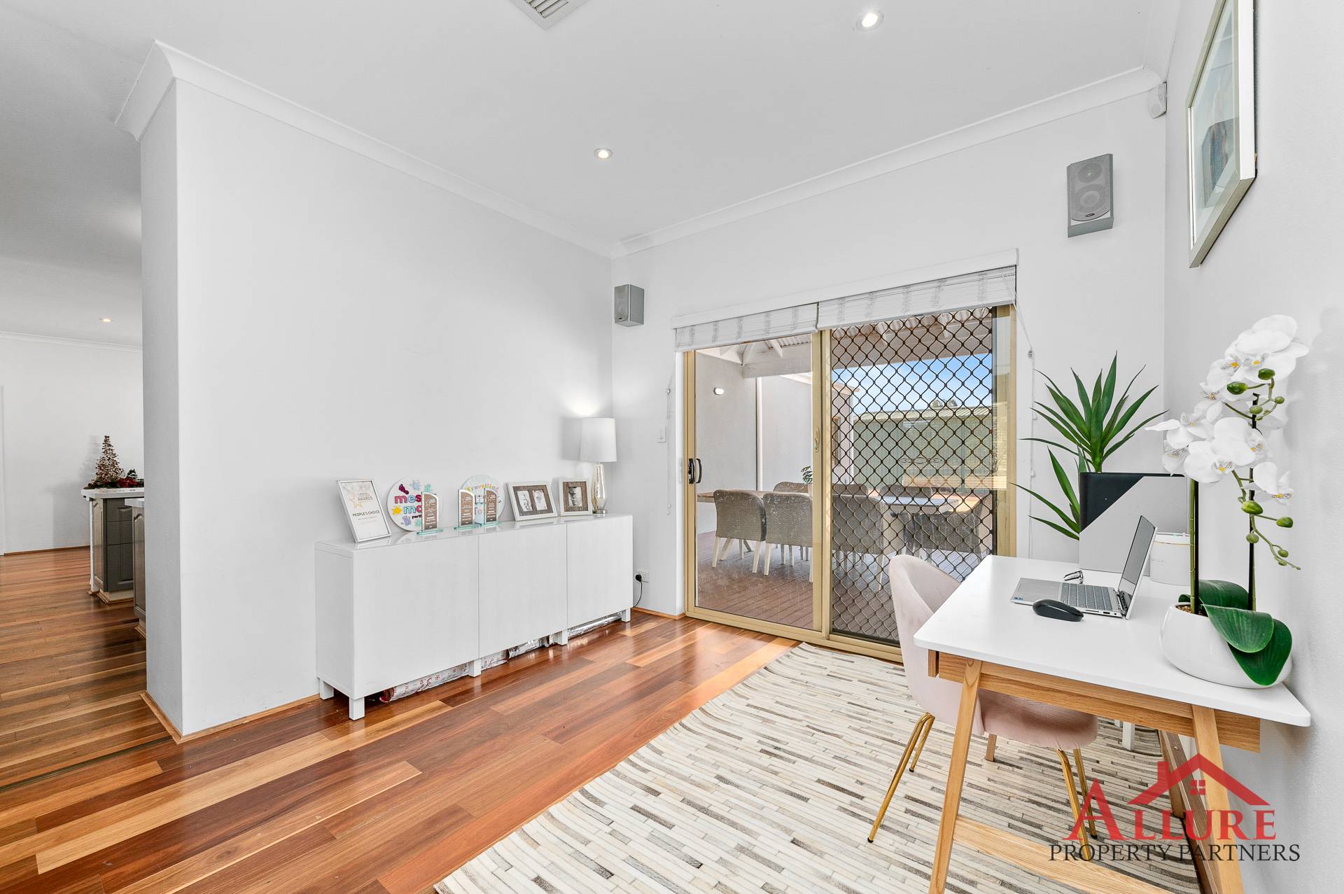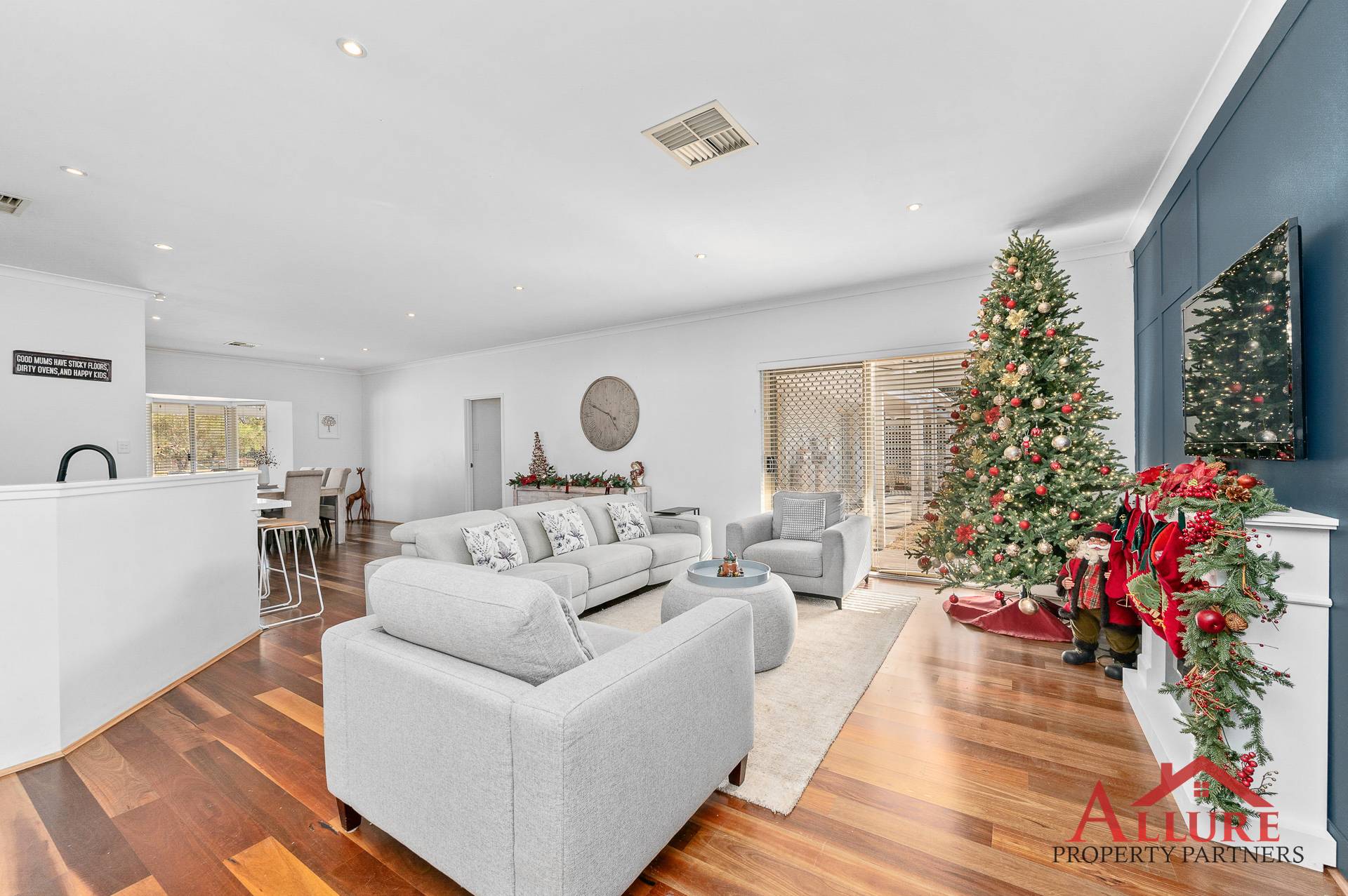 This is a fabulous entertainer’s delight, endless opportunity for formal or informal entertaining with family and friends. The home presents a sprawling open plan layout, with high ceilings throughout, collectively offering 4 bedrooms, 2-bathroom home with multiple living areas. Such as a theatre room for family movie night, an open plan study nook or activity area, a home office/ 5th bedroom. The kitchen, positioned at the heart of our home, offers a scenic view of the patio and the open-plan family living/dining space, complete with an island bench and breakfast bar.