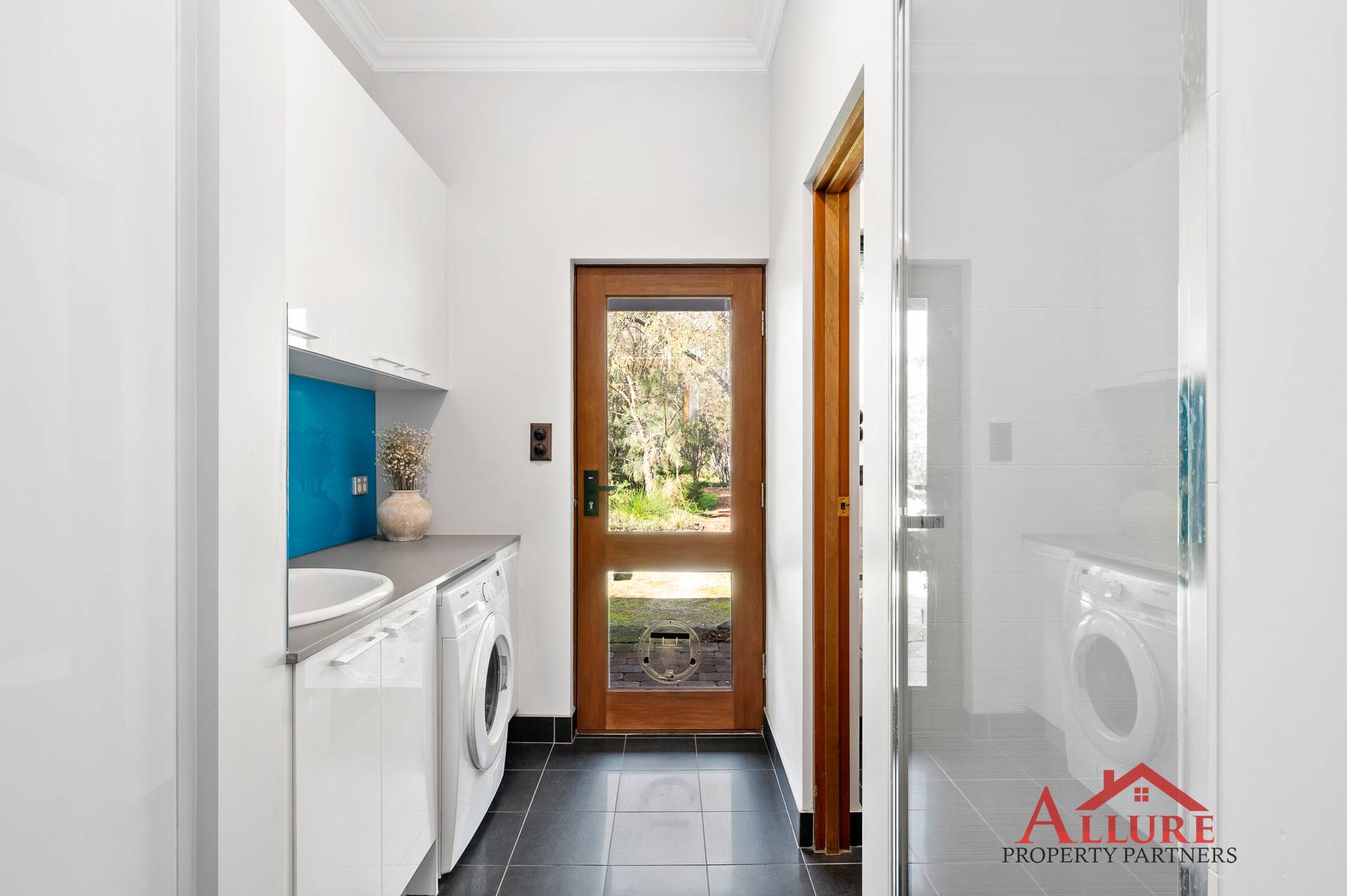 Well-appointed laundry includes toilet and shower