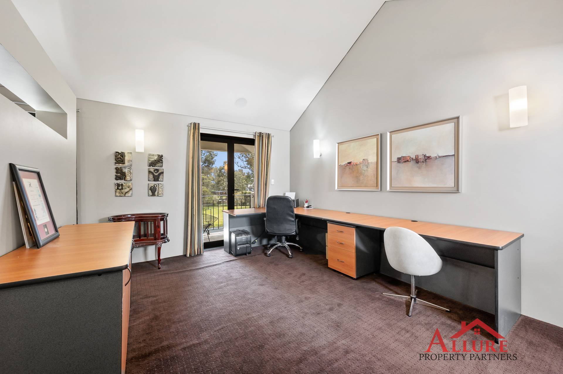 •    Master suite/Parents retreat: located on the upper level of the home, complete with en-suite bathroom, a huge walk-in robe and studio room/home gym could second as the Nursery/study/home office. The double balcony opens out from the master bedroom and the studio room overlooks the fabulous picturesque William Lockard neighbourhood park and captivating lake, enjoy your morning coffee recharging for the day from this serene view.