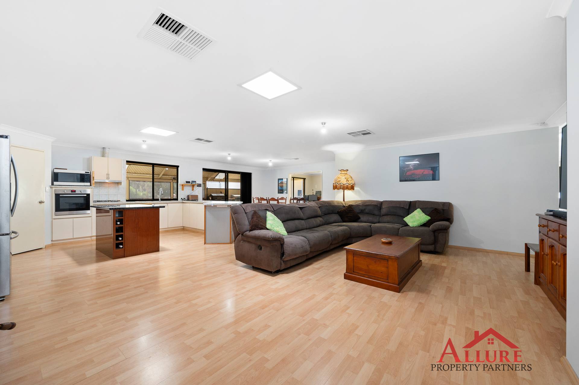 •    Open-plan kitchen overlooking the family living and meals area with walk-in pantry.