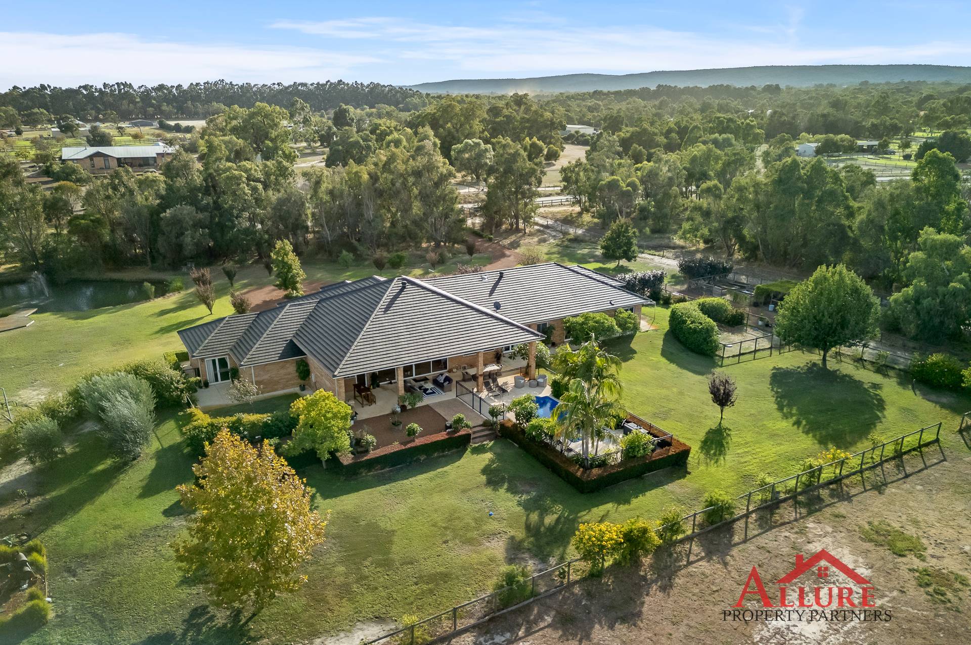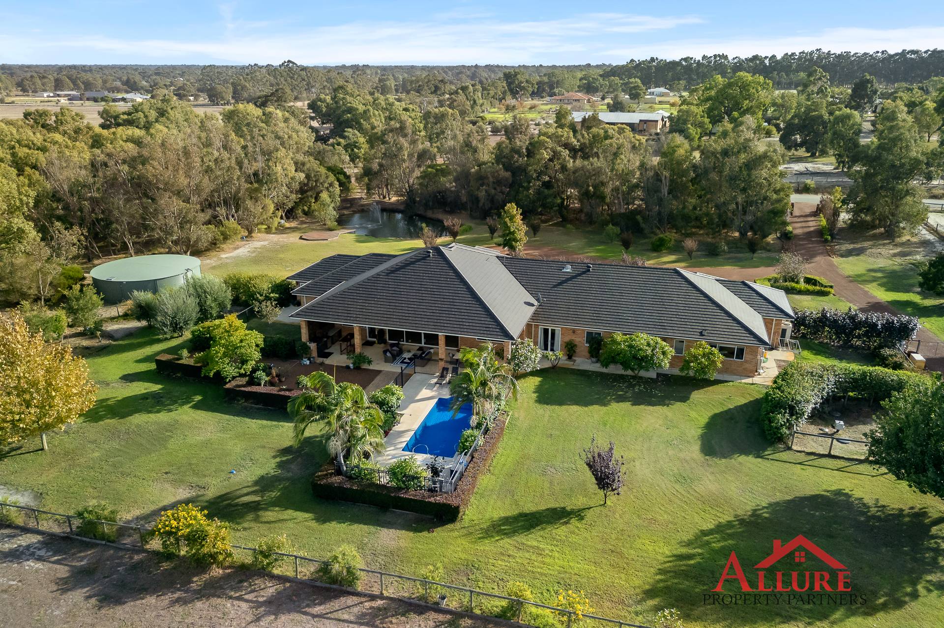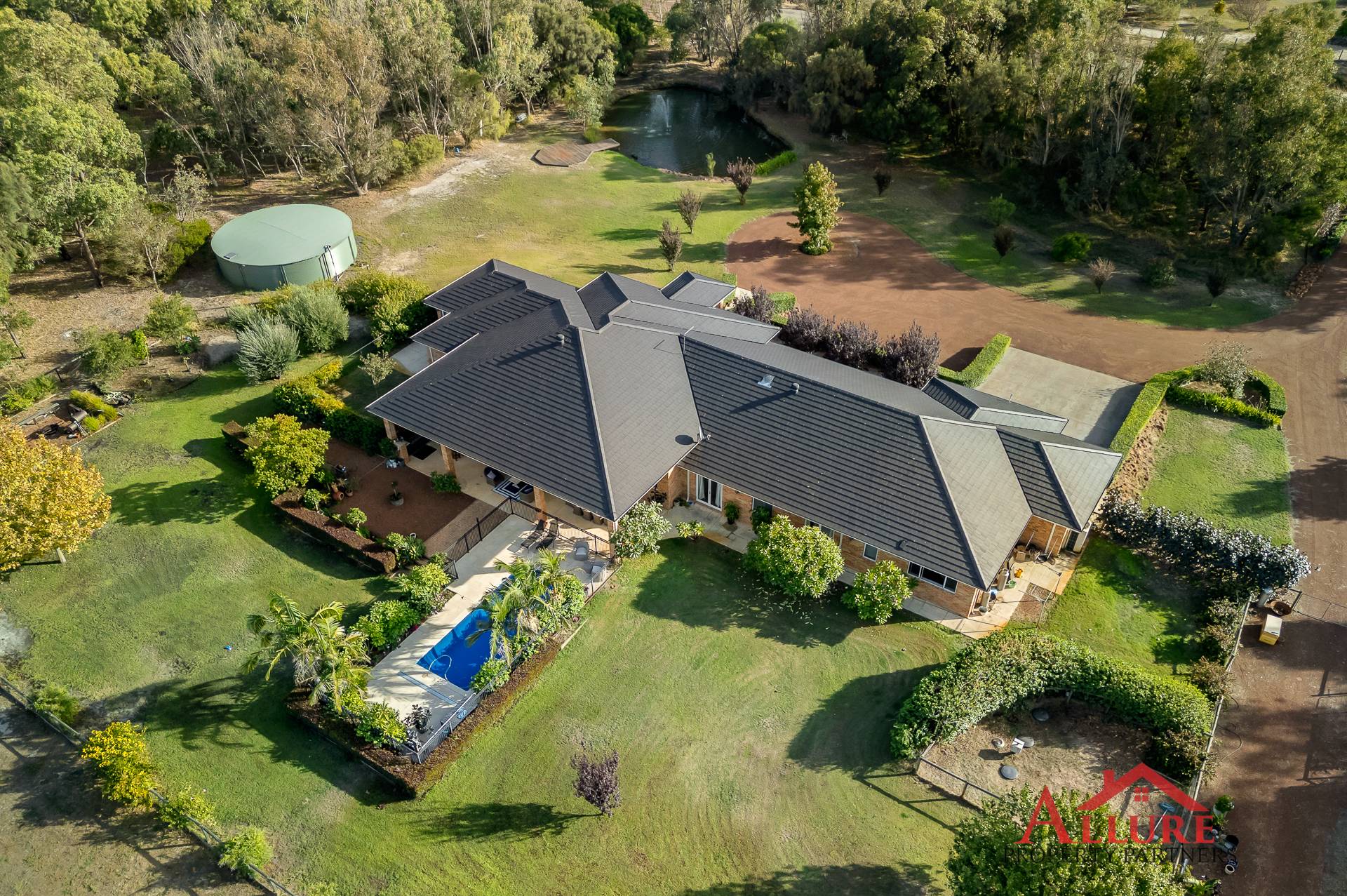 This owner-built masterpiece is located with-in the tranquil countryside and highly sought after location of Cardup. A showstopper family homestead, set back from the road on a generous 5-acre estate with 554.9m2 of residential living space. An exquisite family estate and impressive showcase of country style living, set within the serenity of rural surroundings, copious space to relax and enjoy this fabulous lifestyle which currently is waiting for its new owner who appreciates comfort and style.