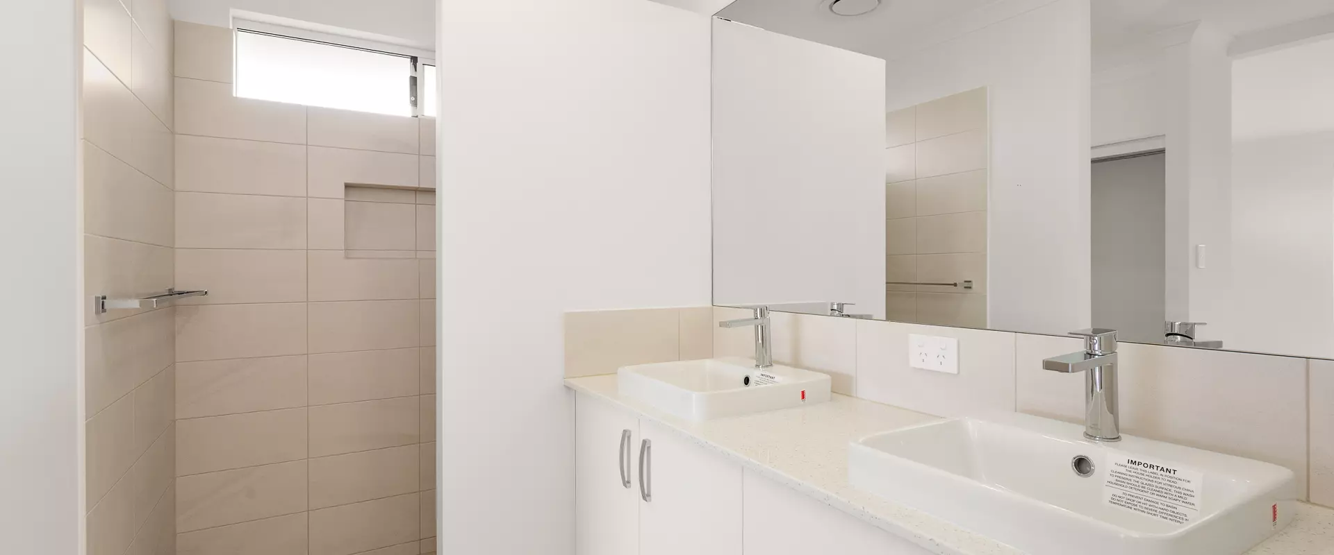 The master suite sits privately at the front of the home — a peaceful retreat featuring dual walk-in robes and an elegant ensuite with double vanities, a large shower with built-in shelf, and quality finishes.