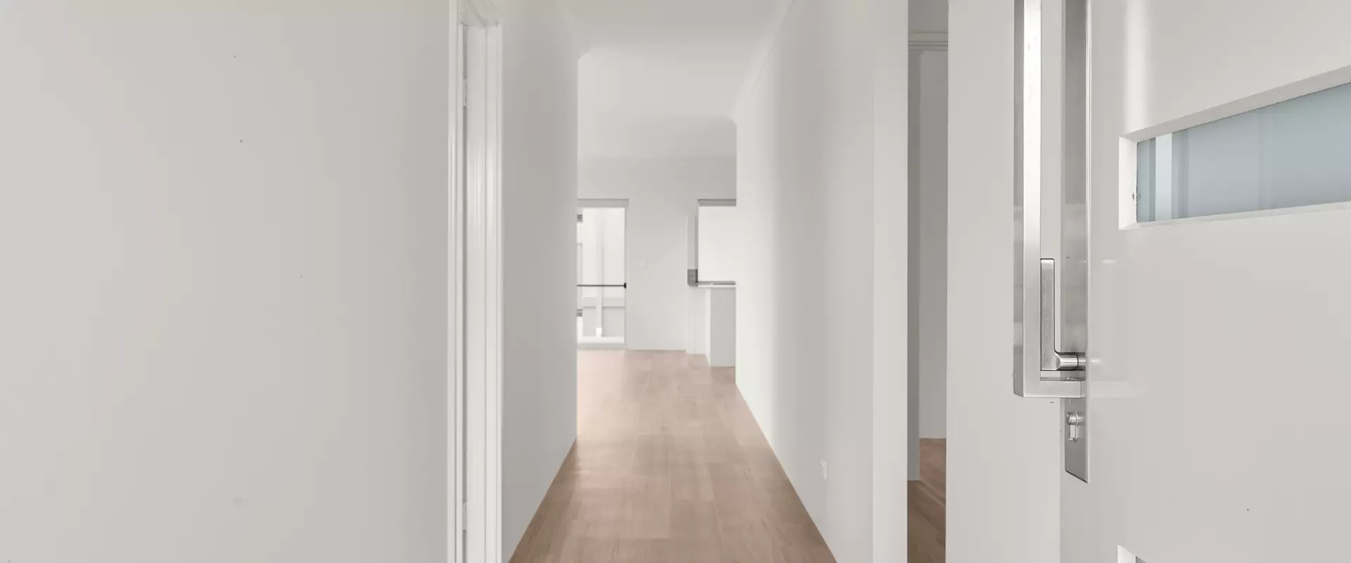 Down the hallway, two generous minor bedrooms with built-in robes (shelf and rail) are positioned near the family bathroom and separate toilet — perfect for children, guests, or a home office.