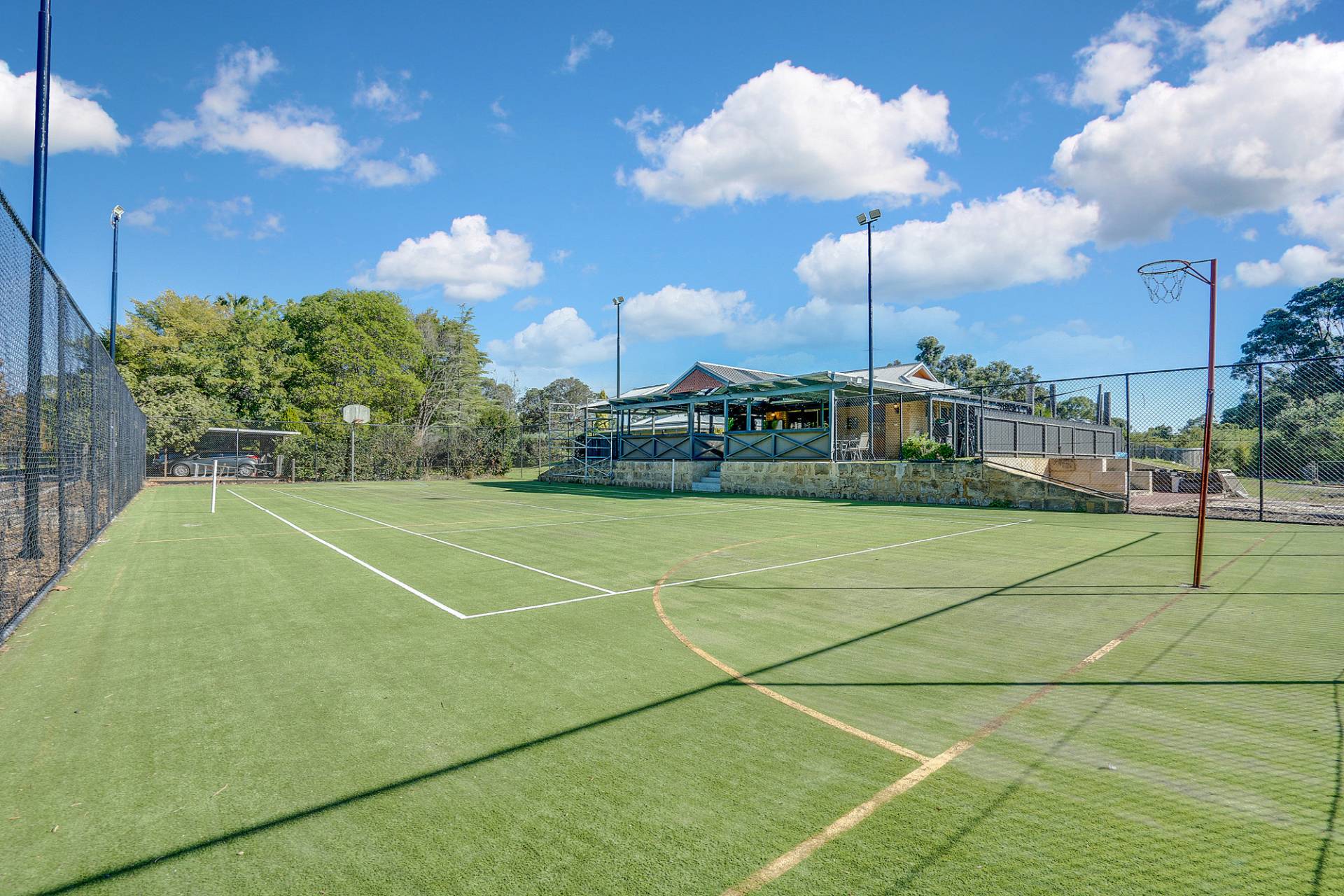 Flood lit tennis court