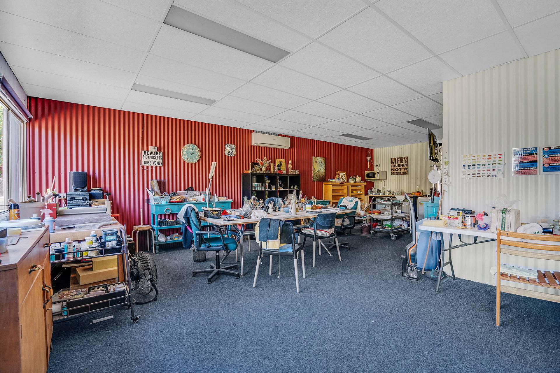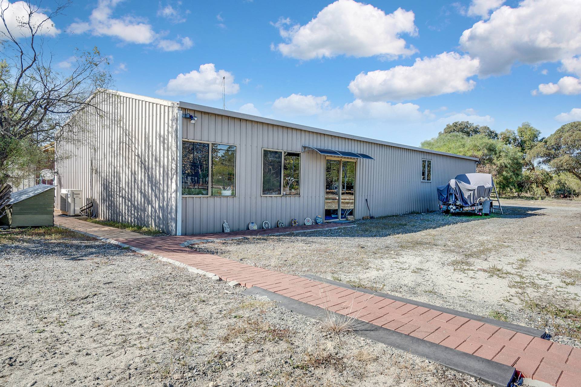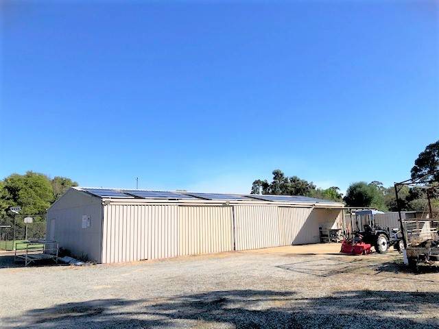 For those that prefer more productive pursuits, the huge shed 20m x 9m (approx.) will cater perfectly for the avid handyman, tradie, car enthusiast, caravan, or boat storage. It is fully equipped with 3 phase power, concrete flooring, the shed is currently partitioned into 4 sections as workshops and a craft studio which also has a small kitchen facility and split system air-conditioning.