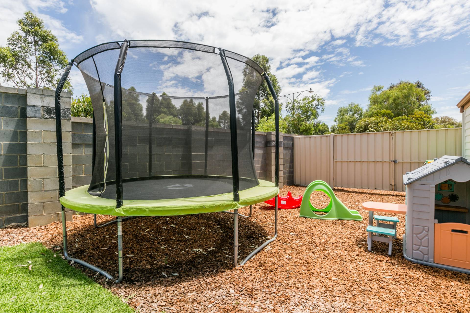 To the rear of the property, a paved alfresco patio area for endless entertaining with family and friends, a substantial manicured lawn area for the kiddies and pets to play, lovely built up garden beds and seating area with plenty of room for a future pool maybe! A double gated entry from the front through to the back garden allowing access through if required for additional secure parking space for the boat, trailer or caravan. There is also two access doors from the rear of the garage, a smart shoppers entry directly into the kitchen from the garage for convenience of unloading the groceries from the car, and second entry directly into the patio.
