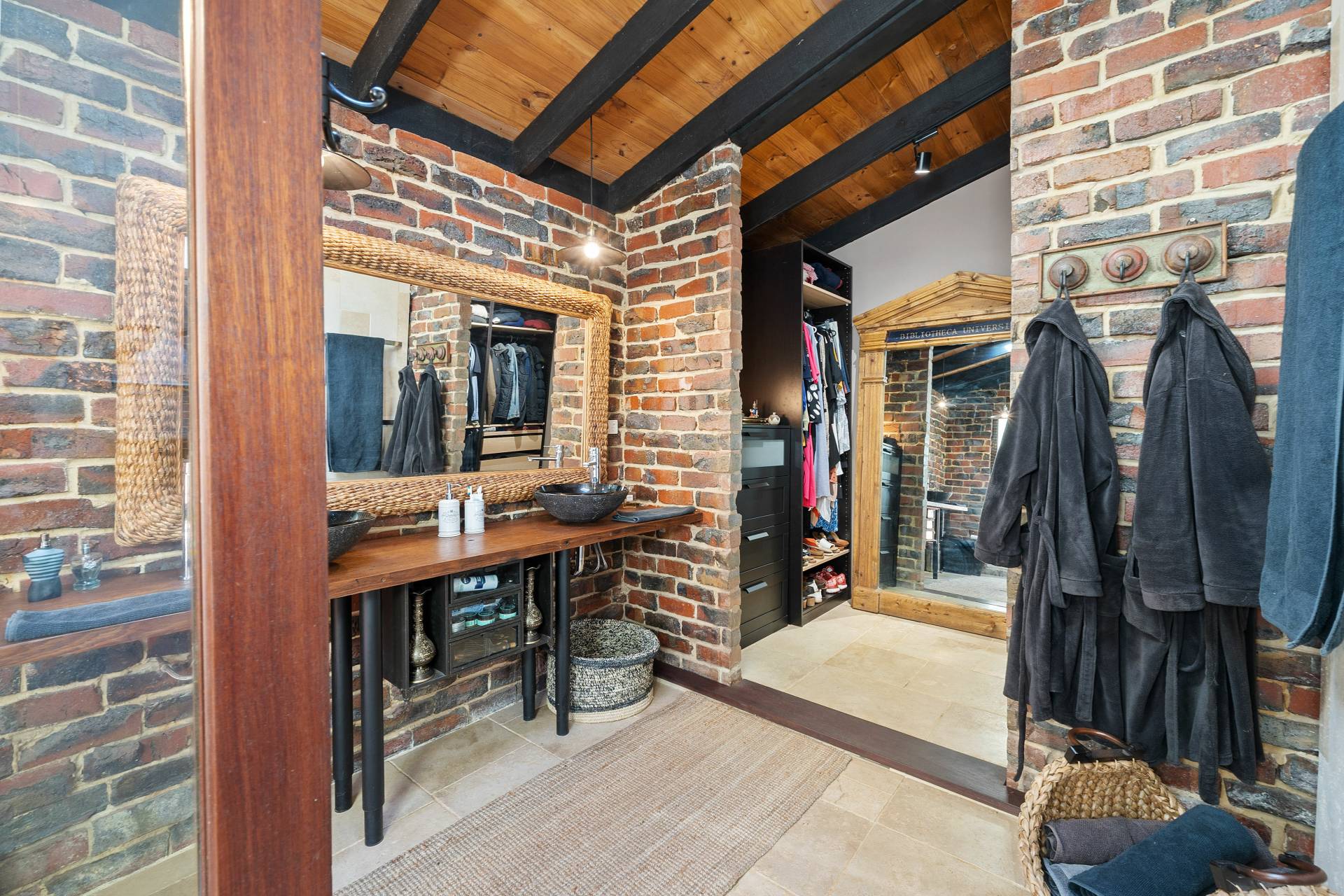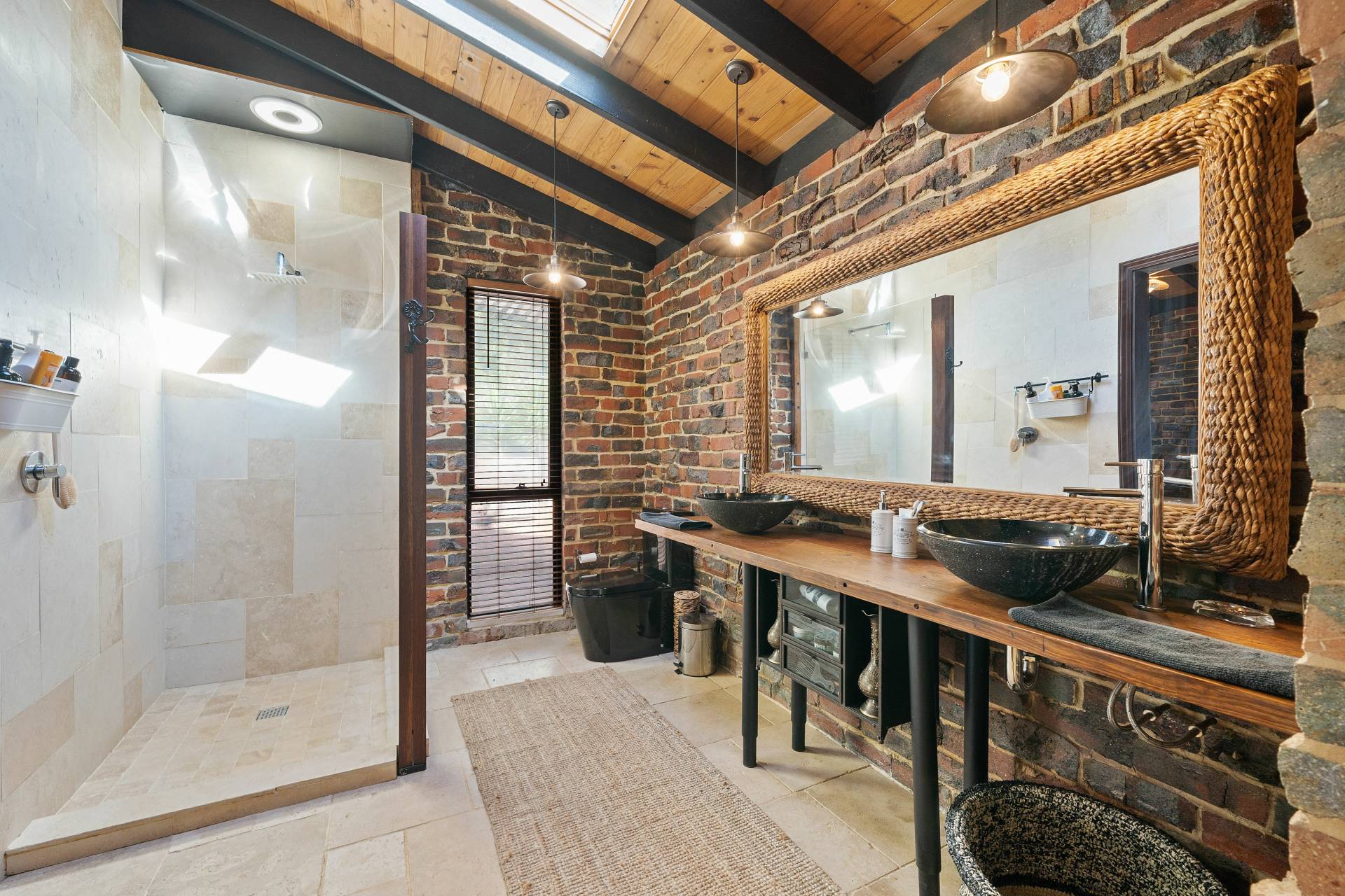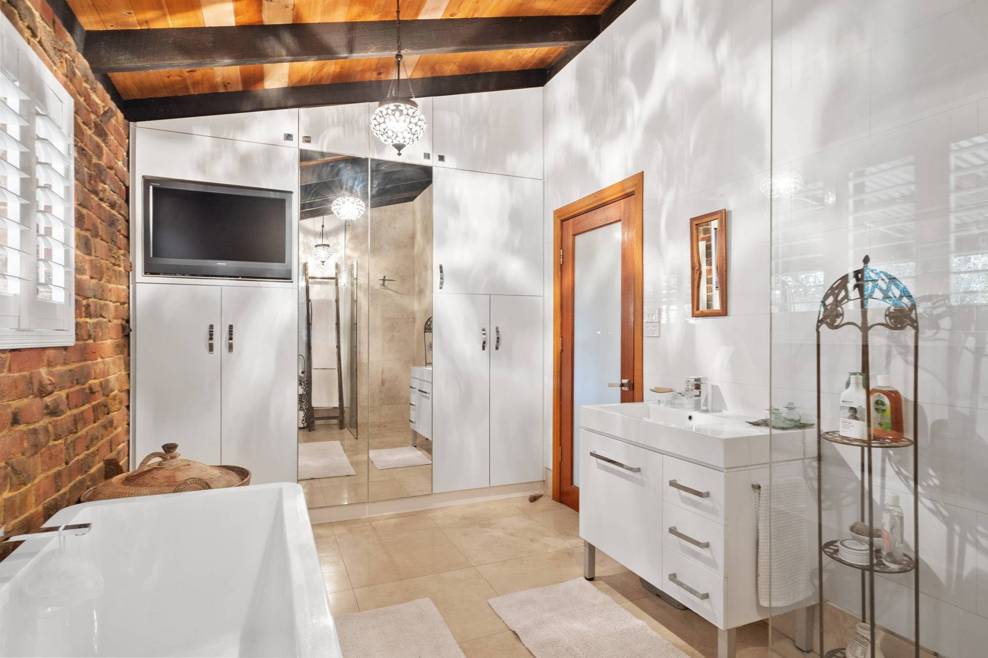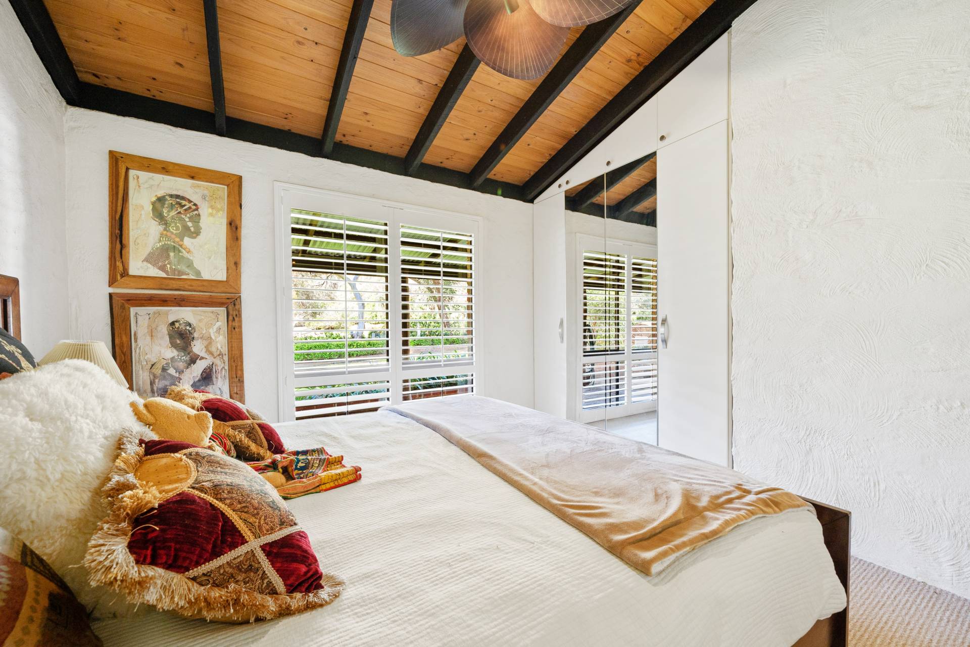 Collectively the home offers 3 good size bedrooms, 2 bathrooms, a study/home office. The king-sized master suite comprises of a spacious walk-in robe, fabulous en-suite bathroom with floor to ceiling tiling, double vanities, a substantial sized shower and separate toilet, the remaining 2 bedrooms are serviced by the second incredibly, styled bathroom comprising of a free-standing bath, wash basin, shower, toilet, built in TV and a stylish European laundry discreetly hidden away with linen storage. The chef of the family will love cooking in this classic country style kitchen with quality SMEG & Miele appliances, located at the helm of the home overlooking the family /dining area, boasting ample storage, together with a spacious chef scullery and pantry, a substantial sized custom built granite breakfast bar and a bounty of bench top space every chef dream of. The open plan family living designed with exposed beams, raked ceilings, rattan ceiling fans and sky lights.