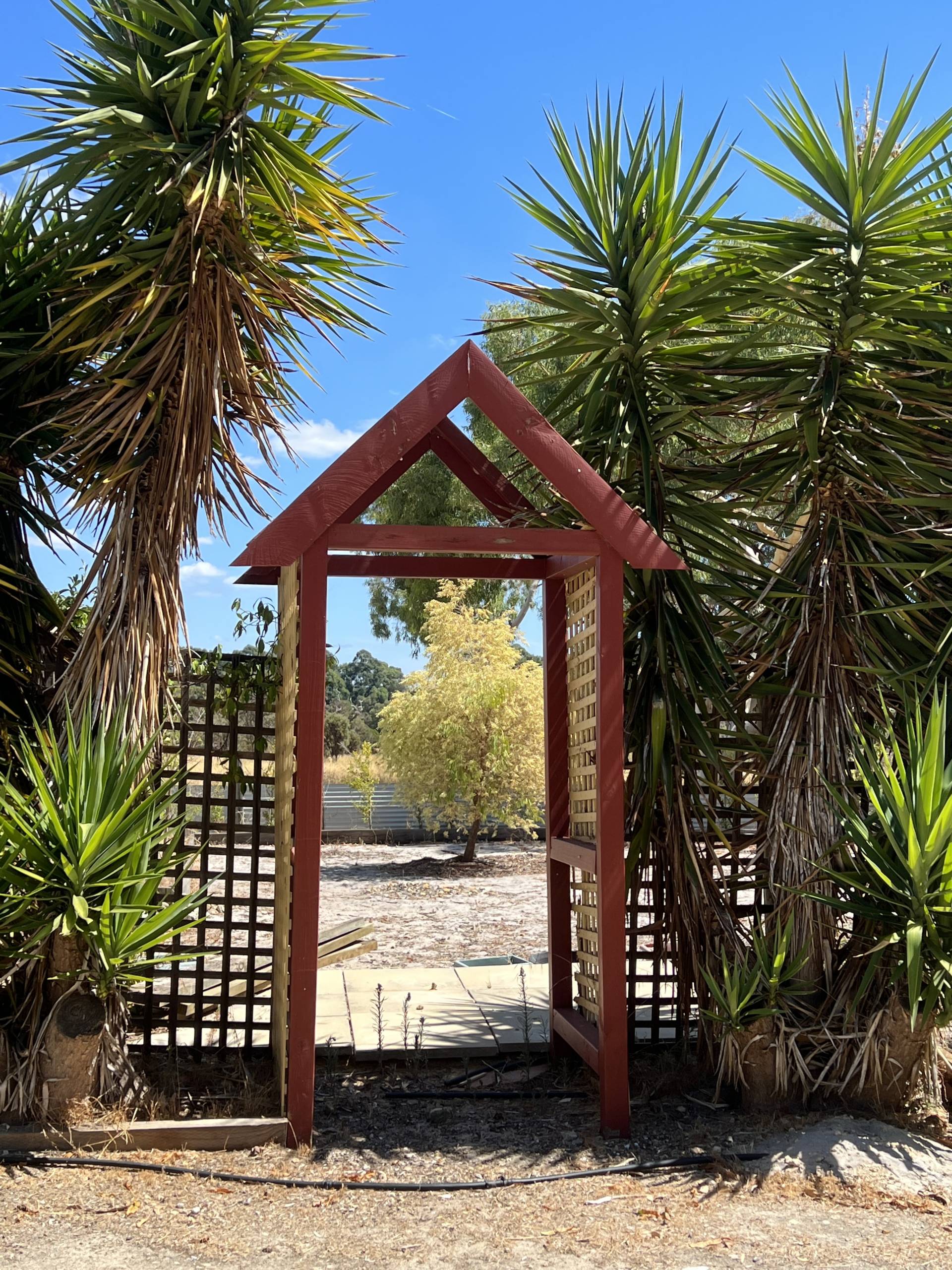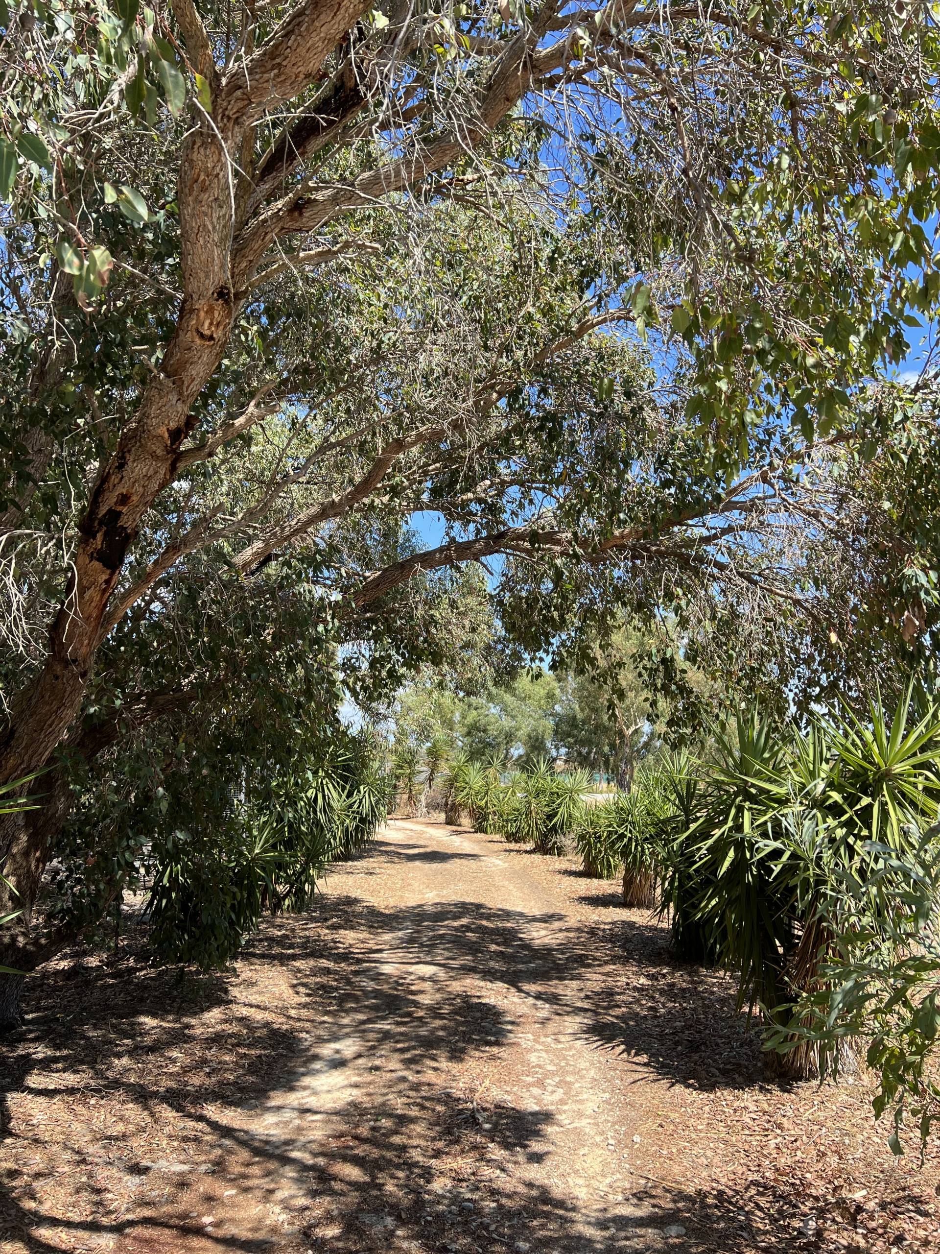 Trees: avocado, peach, olive, apple, guava, lime, mulberry, yuccas, frangipanis, hibiscus