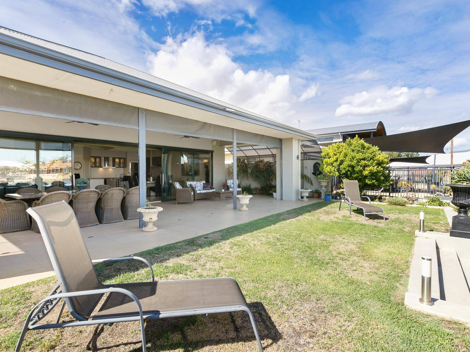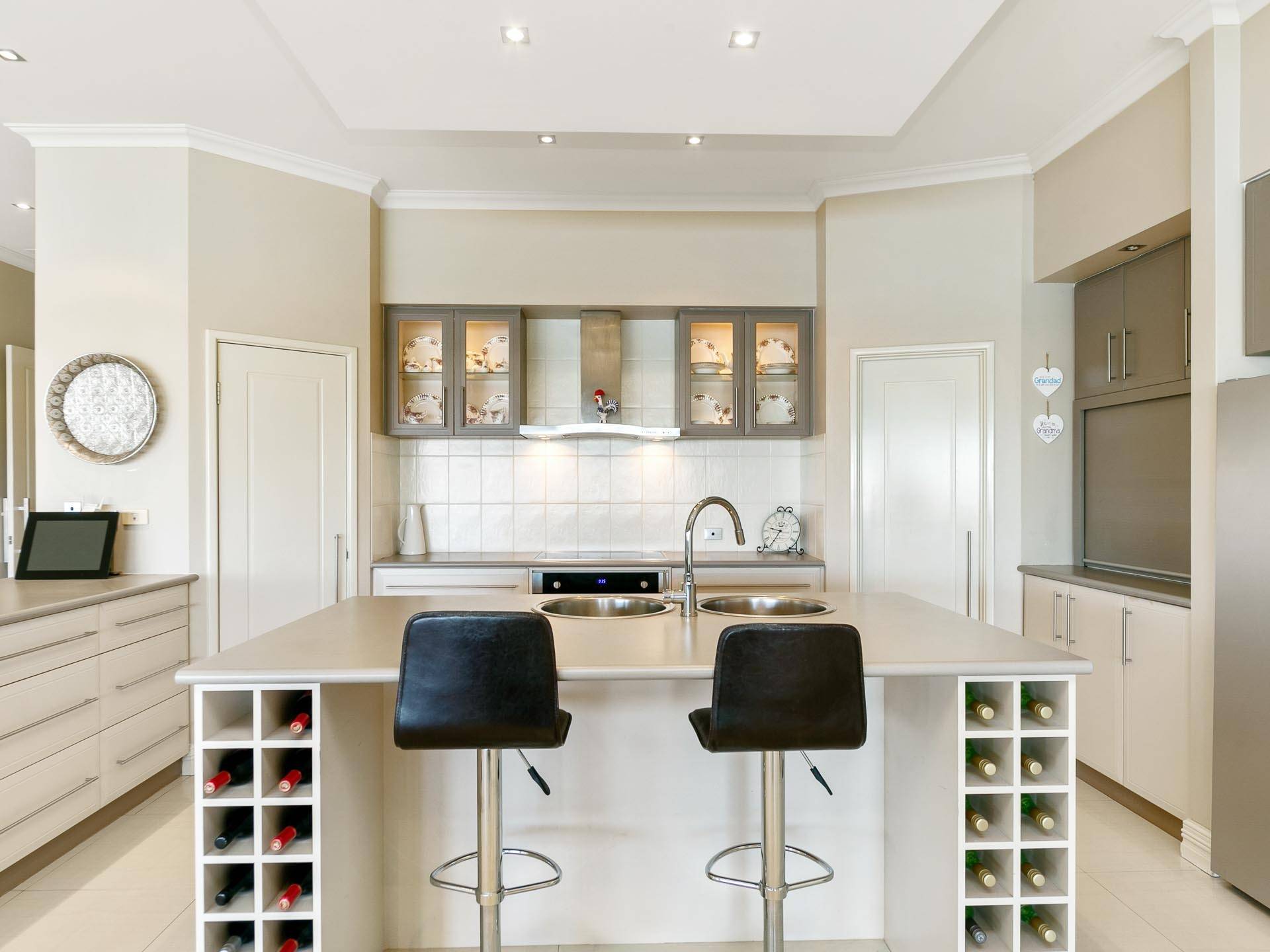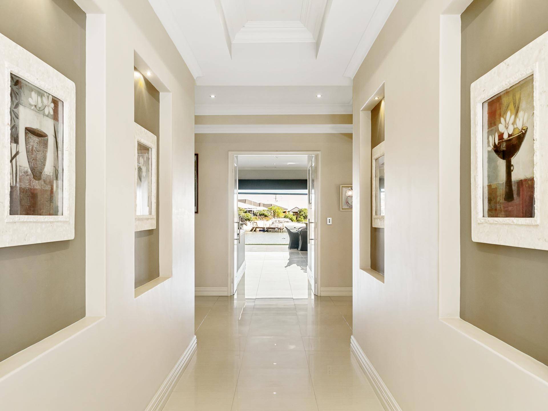 The very well-appointed open plan kitchen would sit comfortably within any designer magazine offering an abundance of storage, large walk-in pantry, roller door appliance cupboard, electric built in oven and cook top, a spacious island bench/breakfast bar is equipped with double bowl sink and built-in wine rack storage, overlooks the open plan living/dining area with stunning views of the canal. The spacious laundry/scullery has built in cupboards with additional storage that every home requires.